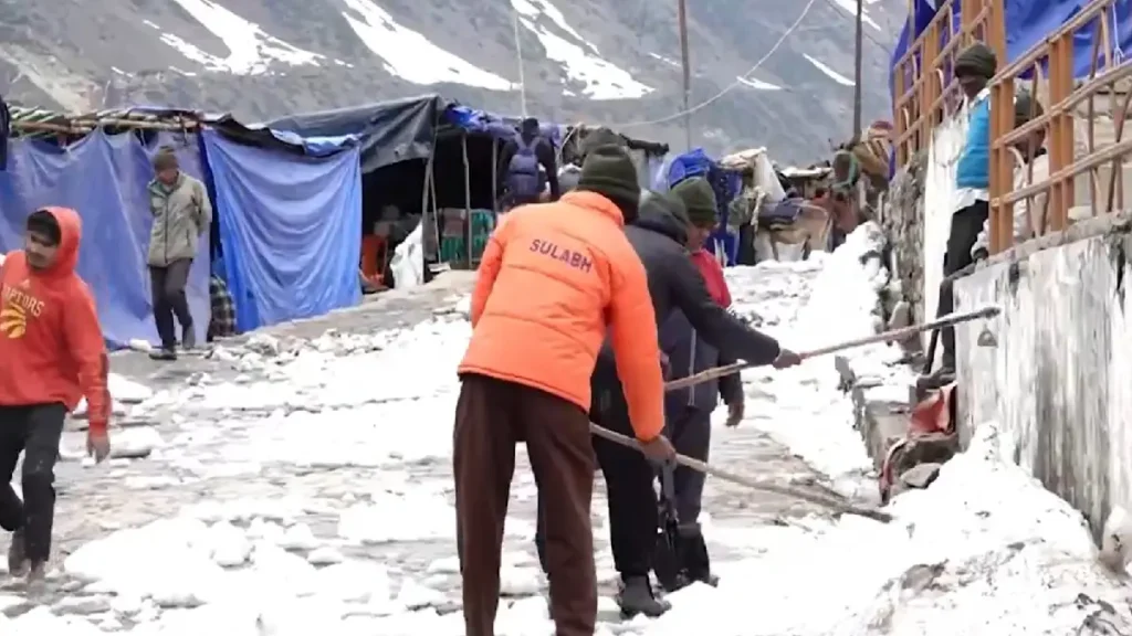 বুধবার ২২ এপ্রিল খুলে যাচ্ছে কেদারনাথ মন্দির। রাস্তায় বরফ সাফাইয়ের কাজ চলছে। ছবি ‘এক্স’ থেকে নেওয়া।